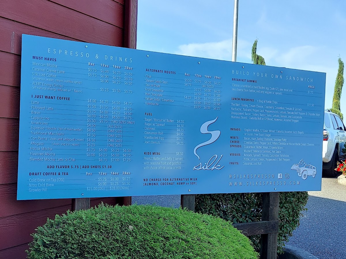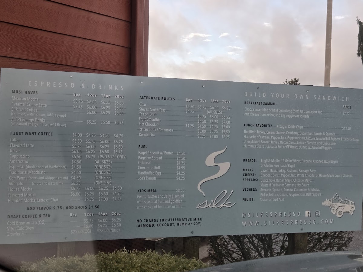 From a reviewer’s perspective, the menu at Silk Espresso - Dodge Park feels thoughtfully curated, striking a balance between simplicity and everyday versatility. Rather than overwhelming guests with endless choices, the menu focuses on familiar, comforting options that suit a wide range of tastes and moments throughout the day. On the beverage side, the Non-Coffee Drinks selection stands out for its inclusiveness, featuring staples like Milk, the refreshing Smith Tropical Green Tea, classic Sodas, warming Chai, and naturally fermented Kombucha, making it easy for non-coffee drinkers to feel just as welcome. Coffee lovers, meanwhile, are well taken care of with a solid lineup of Coffee Drinks, including smooth Cold Brew, bold SIC, straightforward Americano, creamy Latte, and indulgent Blended options that cater to both purists and those who enjoy sweeter, dessert-like beverages. Complementing the drinks is a modest but practical food menu designed for quick bites and comfort. Items like Soup and Oatmeal provide warmth and nourishment, while Hard Boiled Eggs offer a simple, protein-rich choice. The presence of Kids Meal shows consideration for families, and playful options such as Zoomies add a casual, approachable feel. Overall, the menu reflects the café’s identity as a neighborhood spot-reliable, unfussy, and welcoming-where the emphasis is on quality basics done right rather than flashy experimentation, making it an easy place to return to again and again.